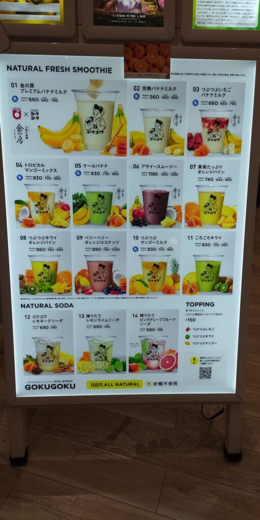 出先で見かけたスムージーのお店のメニュー